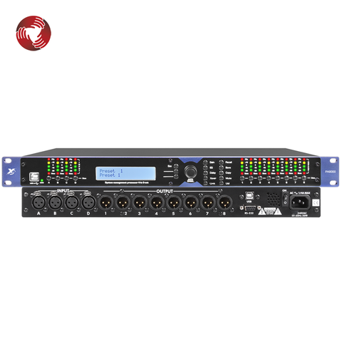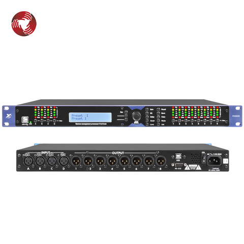 Procesador de sistema de audio DSP 4 en 8 salidas con software Delay EQ Procesador de altavoz digital profesional para sistema de sonido